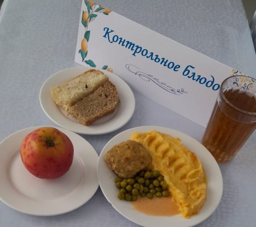 Күнделікті бақылау тағамдары шығарылады: картоп пен сәбіз пюресі, жасыл бұршақ, тұздық, балық торттары, алма, итмұрын сусыны, қара бидай наны.