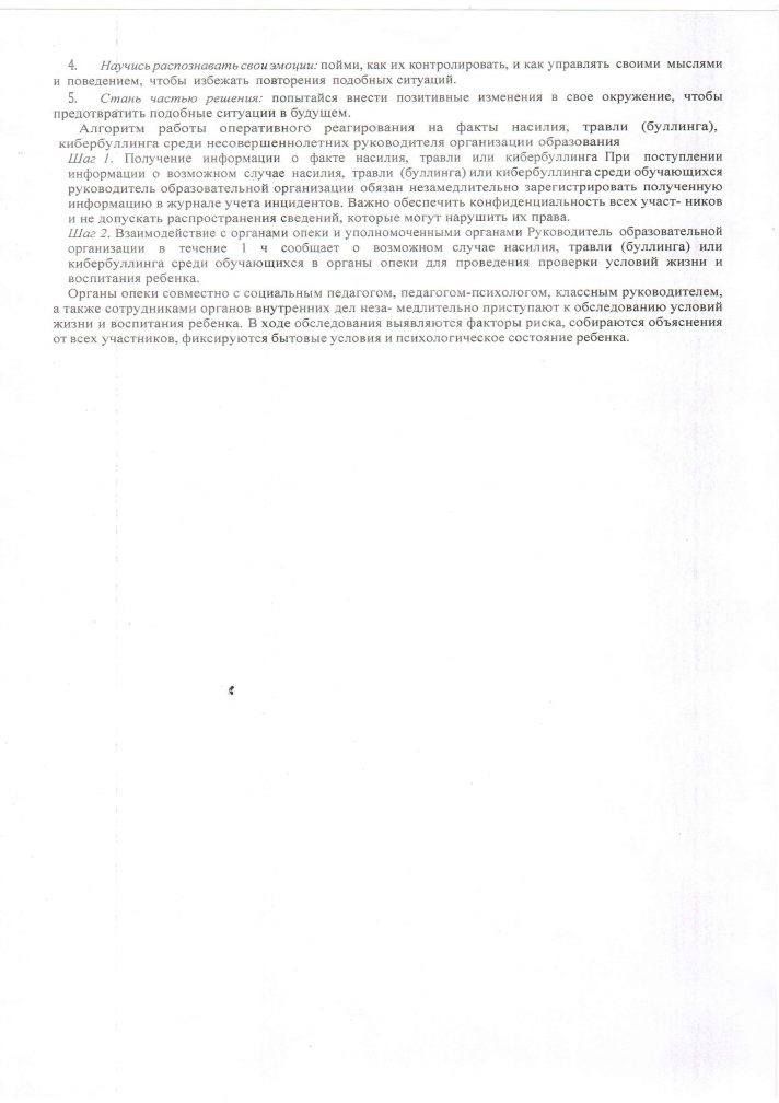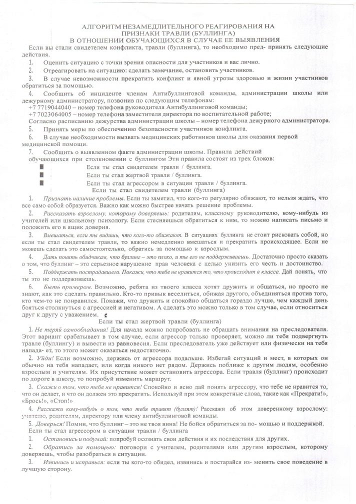 Оқушыларға қатысты әлімжеттік (буллинг) белгілері анықталған жағдайда жедел әрекет ету алгоритмі