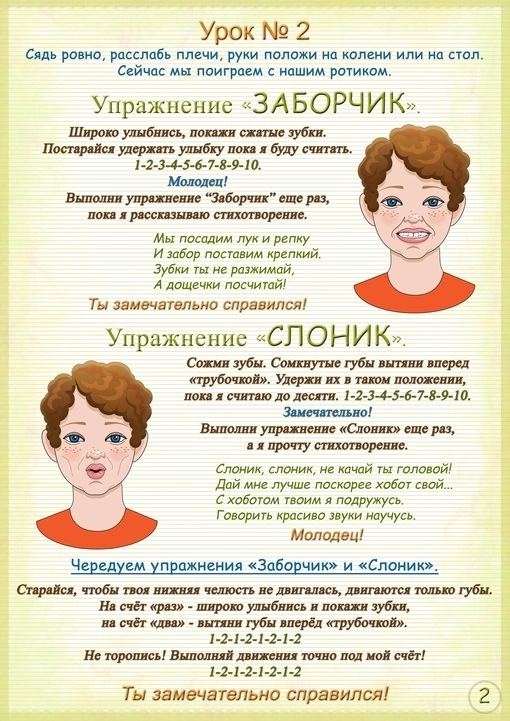 3. "Қоршау" - "Пробоскоп" - ауыспалы жаттығулар, бір рет - "қоршау", екі - "Пробоскоп". Төменгі жақ қозғалмайды, тек еріндер қозғалады. 5-6 рет қайталаңыз.